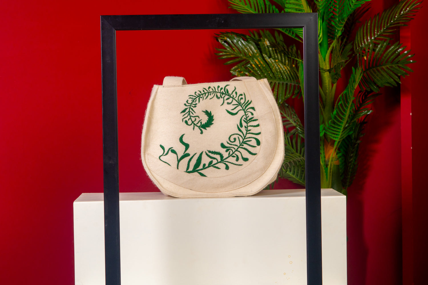 Explore the Kadhāi Loom Collection: handcrafted felt bags featuring detailed embroidery, rich...